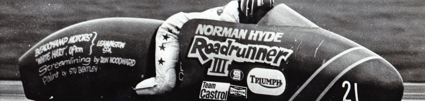 Fifty years ago on 24th September 1972, our T.O.M.C.C. Patron Norman Hyde, wheeled his nitro-methanol burning 830cc Trident-powered outfit ‘Roadrunner III’ onto the runway at the RAF base of Fairford in Gloucestershire. The home of Concorde. He was going to attempt to break the flying kilometre world speed record held by George Brown at 158.23 mph.
