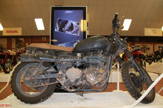 Thanks to our friends at Triumph Motorcycles Beckham’s brilliant mud splattered machine will be on display in Hall 1 of the Museum until February 2015.