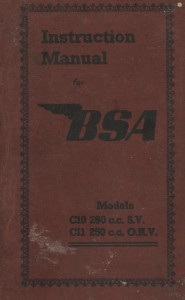 Picked: BSA 1951 Instruction Manual. Models C10 250cc s.v and C11 250cc o.h.v.