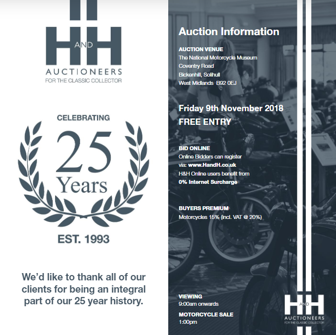 Don’t forget the next H&H Classics motorcycle auction will take place tomorrow – Friday, November 9th from 0900am, here at the National Motorcycle Museum in Birmingham.