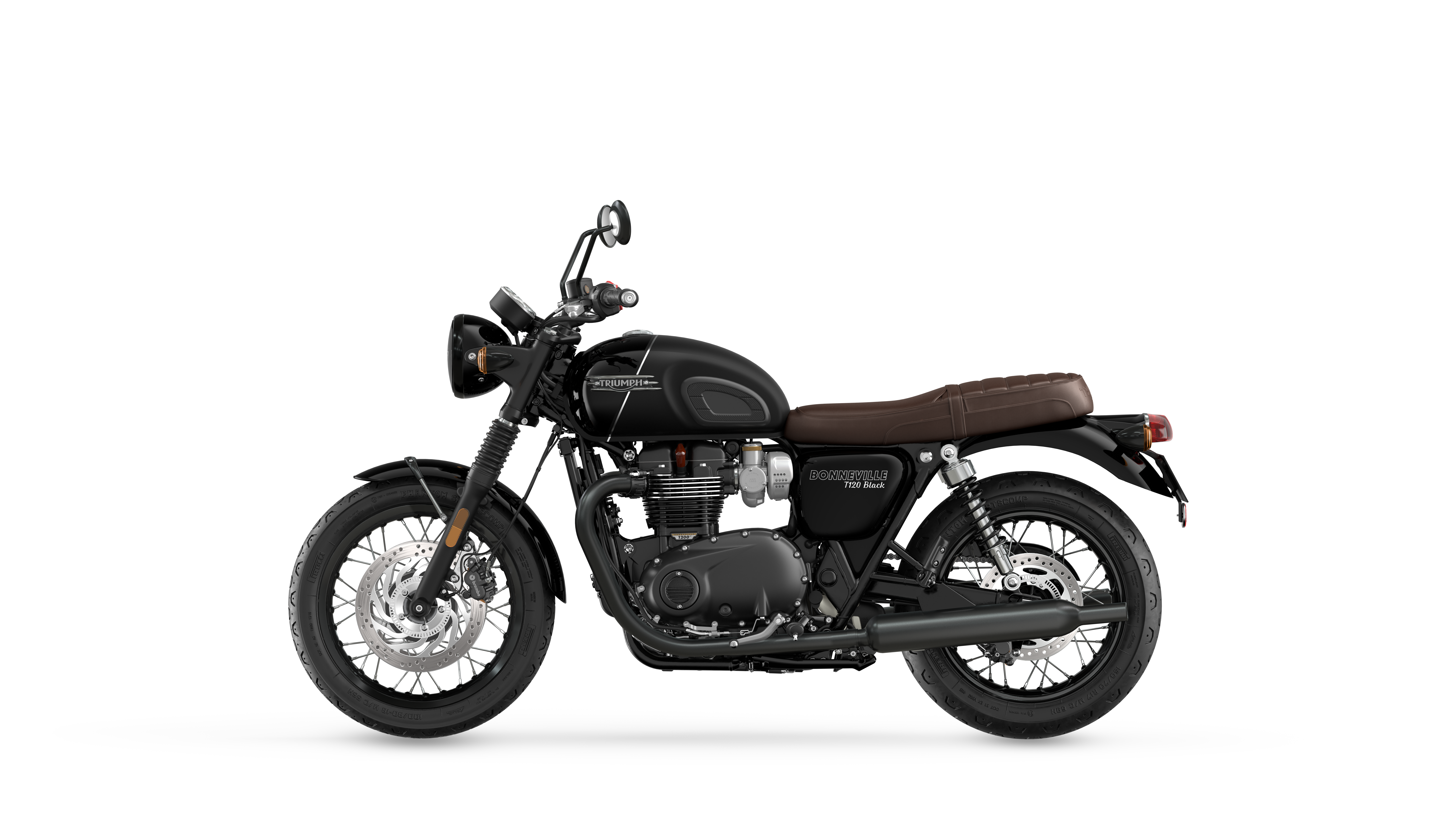 The classic Bonneville T120 Black comes in two colours for model year 2023, with a timeless Triumph Jet Black, and a sophisticated new Sapphire Black and Matt Sapphire Black split scheme across the tank, accentuated with carefully hand-painted silver coach line detailing. The new scheme also features Sapphire Black mudguards, side panels and headlight bowl.