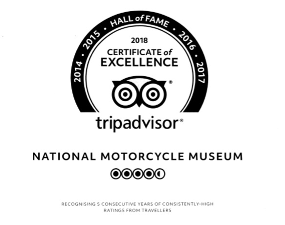 Fantastic news……The National Motorcycle Museum has just be awarded this Certificate of Excellence from Trip Advisor for 2018.