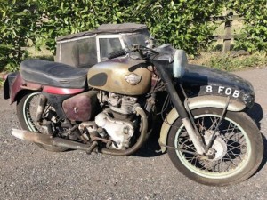 This Royal Enfield Constellation 700cc with its Wessex sidecar was a perfect ‘time capsule’, found in a Birmingham garage at the bottom of an overgrown garden with overalls, helmets and maps still sat in the sidecar when they were last used 53 years ago by John Hardwicke. The late Mr Hardwicke bought the bike new in 1962 for £231, used it briefly then parked it in his garage at the bottom of the garden and never took it out for 53 years after the birth of his daughter.