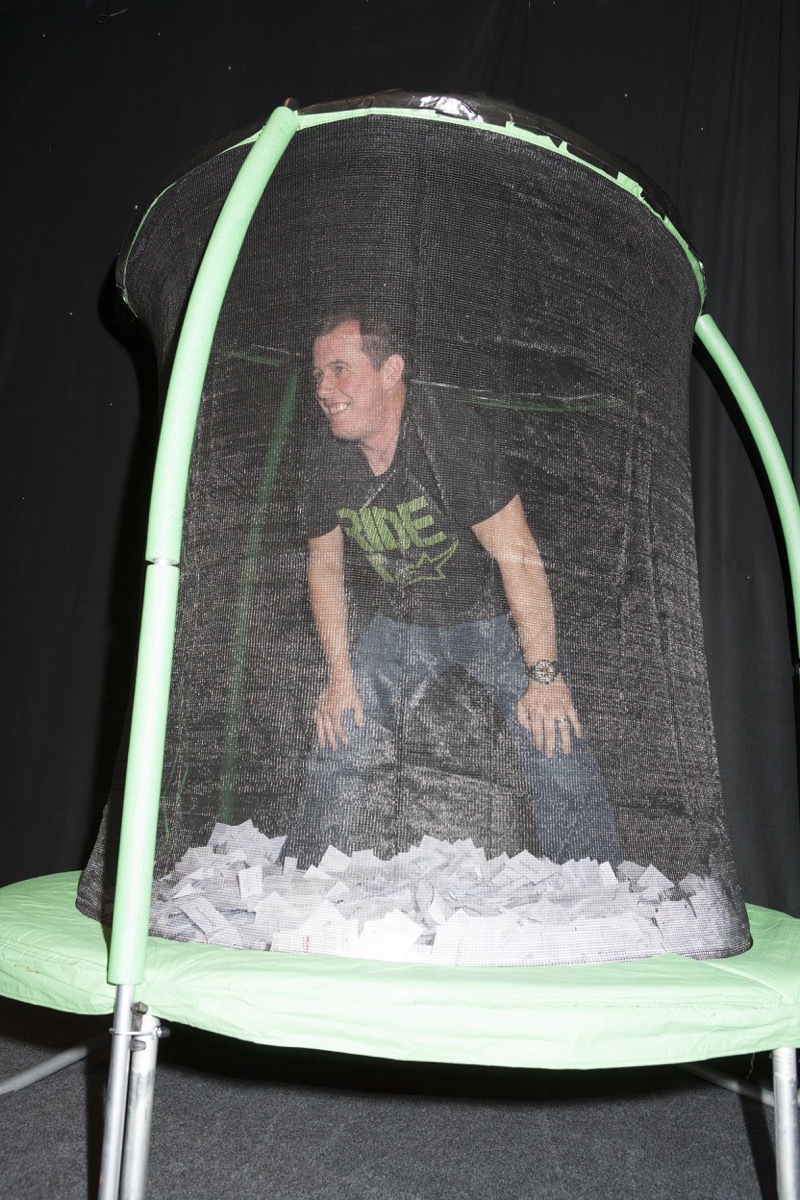 John was happy to climb into the special Museum trampoline and mix up all the tickets by bouncing on them drawing out the following lucky winners :