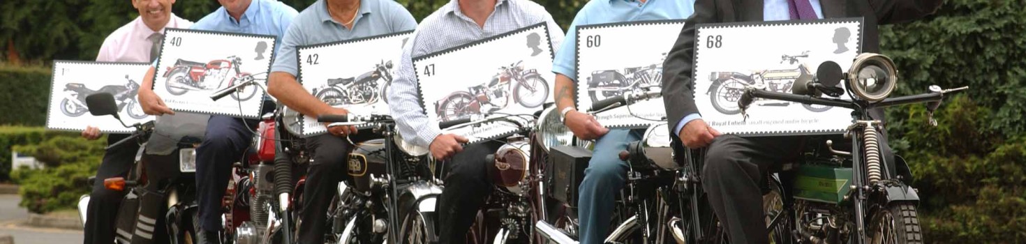 It’s 2005 and museum founder, the late Roy Richards, is celebrating the launch of a set of classic motorcycle commemorative postage stamps that we helped the Royal Mail to create.