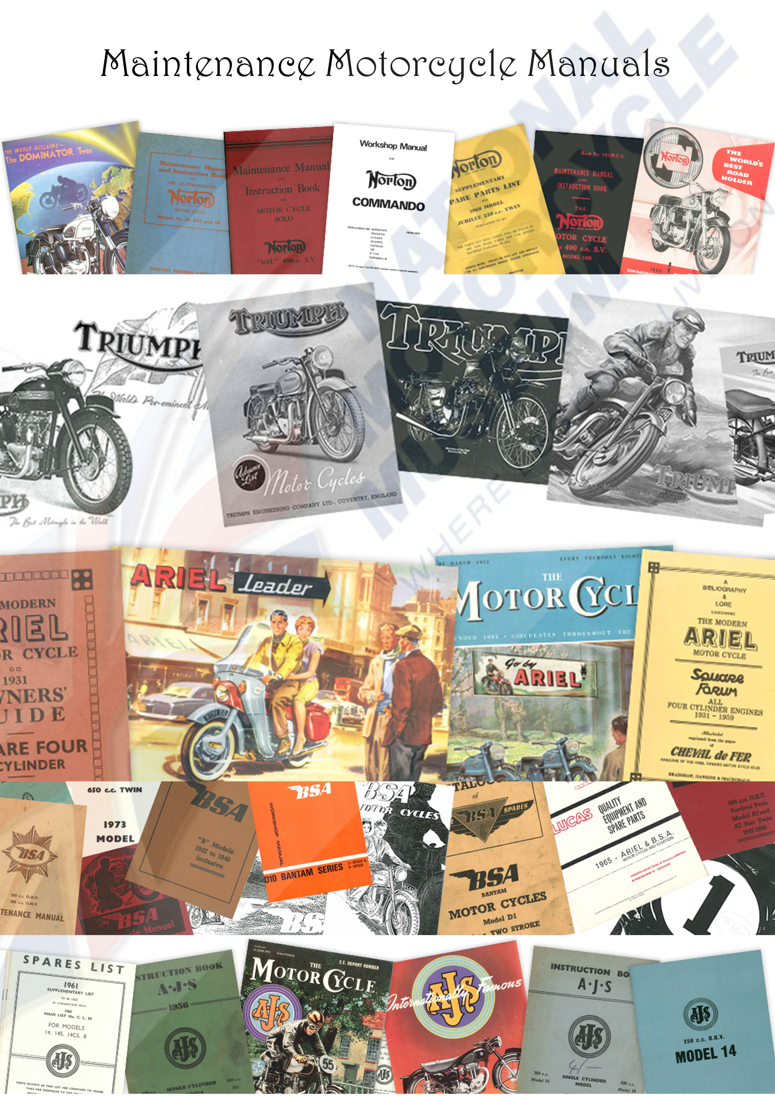 High quality B&W photocopy sets of manufacturer’s original literature invaluable to both restorers and riders of vintage and classic motorcycles.