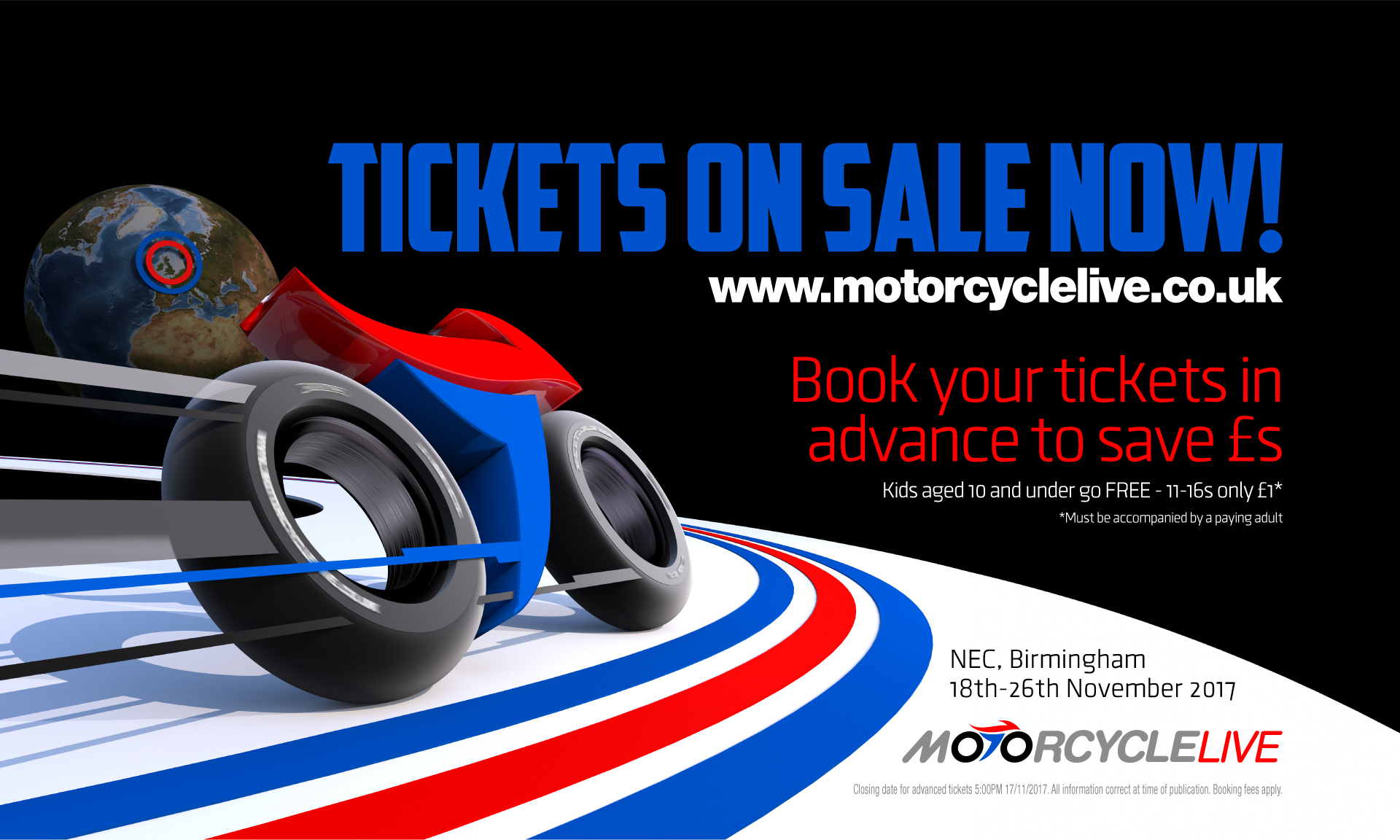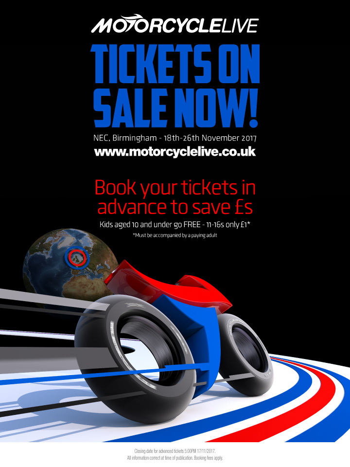 Tickets for Motorcycle Live 2017, the UK’s biggest bike show, are on sale now… Love it? Live it! See us there from 18-26 November at The NEC, Birmingham.