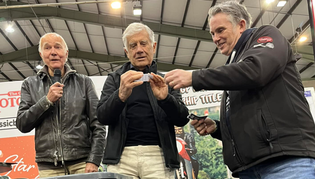 The winning tickets were drawn by motorcycle racing legend Giacomo Agostini on Sunday 23rd April 2023 at the at The International Classic Motorcycle Show, Stafford.