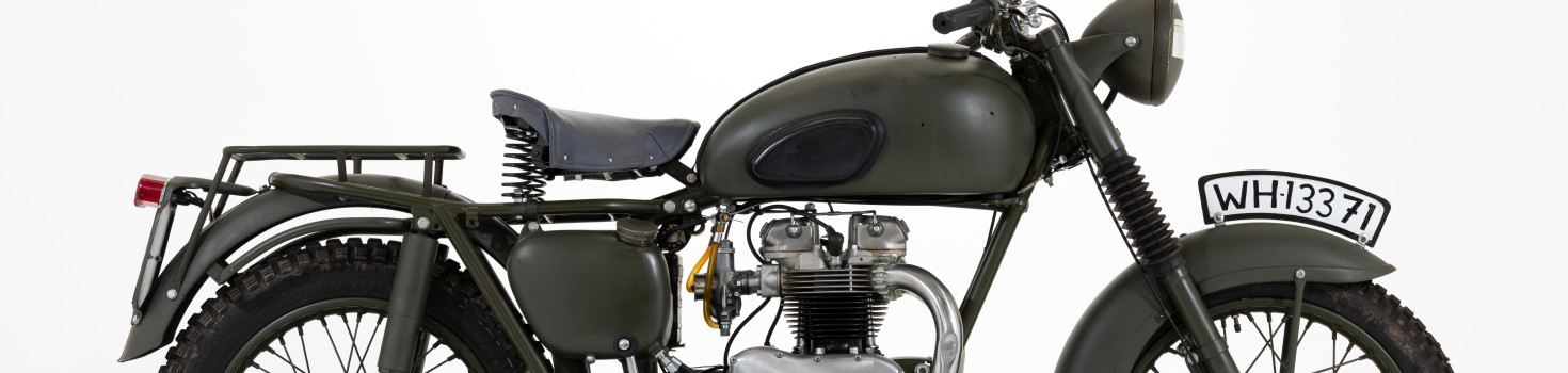 With the demands of the jump, there was no way that the ‘correct’ Wehrmacht BMW’s with their low power flat twin engines and rigid frames could have been up to the job.