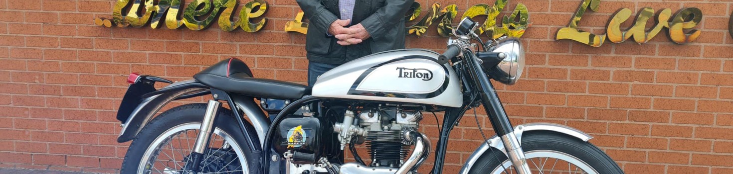 Graham Povey and his family journeyed to the NMM to collect his 1958 Triton 650cc!!