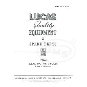 BSA 1962 Illustrated LUCAS Leaflet. Covers all LUCAS Parts and has LUCAS part numbers. CRICKET/1383