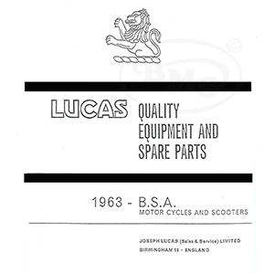 BSA 1963 Illustrated LUCAS Leaflet. Covers all LUCAS Parts and has LUCAS part numbers. CRANE/1380