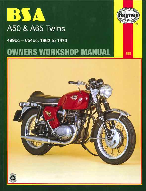 Models covered in this manual: • BSA A50 Star Twin 499cc 1961 to 1965 • BSA A50C Cyclone 499cc 1964 to 1965 • BSA A501R Royal Star 499cc 1965 to 1970 • BSA A50W Wasp 499cc 1969 to 1971 • BSA A65 Star Twin 654cc 1961 to 1965 • BSA A651T Thunderbolt 654cc 1965 to 1972 • BSA A652H Hornet 654cc 1965 to 1966 • BSA A65FB Firebird 654cc 1969 to 1971 • BSA A65L Lightning 654cc 1964 to 1973 • BSA A65R Rocket 654cc 1963 to 1965 • BSA A652S Spitfire 654cc 1965 to 1968