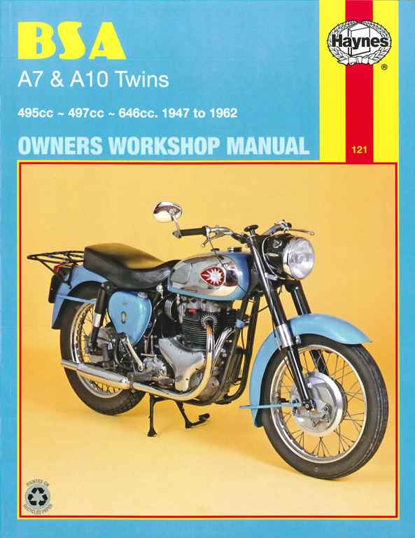 Models covered in this manual: • BSA A7 495cc 1947 to 1950 • BSA A7 497cc 1950 to 1962 • BSA A10 646cc 1950 to 1962