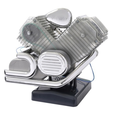This model is a greatly simplified version of a real V-twin motorcycle engine. It’s designed to be a fun project to put together, and when finished, a practical aid to understanding how a full-size four-stroke motorcycle engine works.