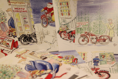 Christmas cards, designed and drawn by John Hancox, commissioned by the National Motorcycle Museum. – Christmas Cards Pack of 10 – 5 designs, 2 of each in the pack