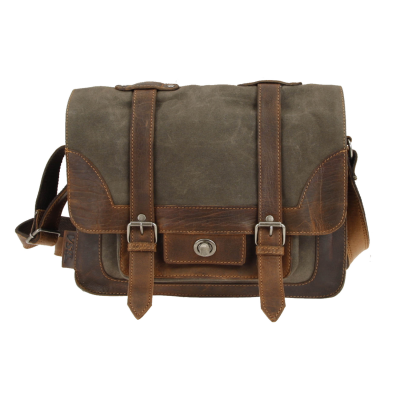 Composition: Full Grain Leather And Canvas Fabric With Branded Cotton Lining. Available In: Brown Hardware Finish: Antique Silver Size: Width 32CM, Height 26CM