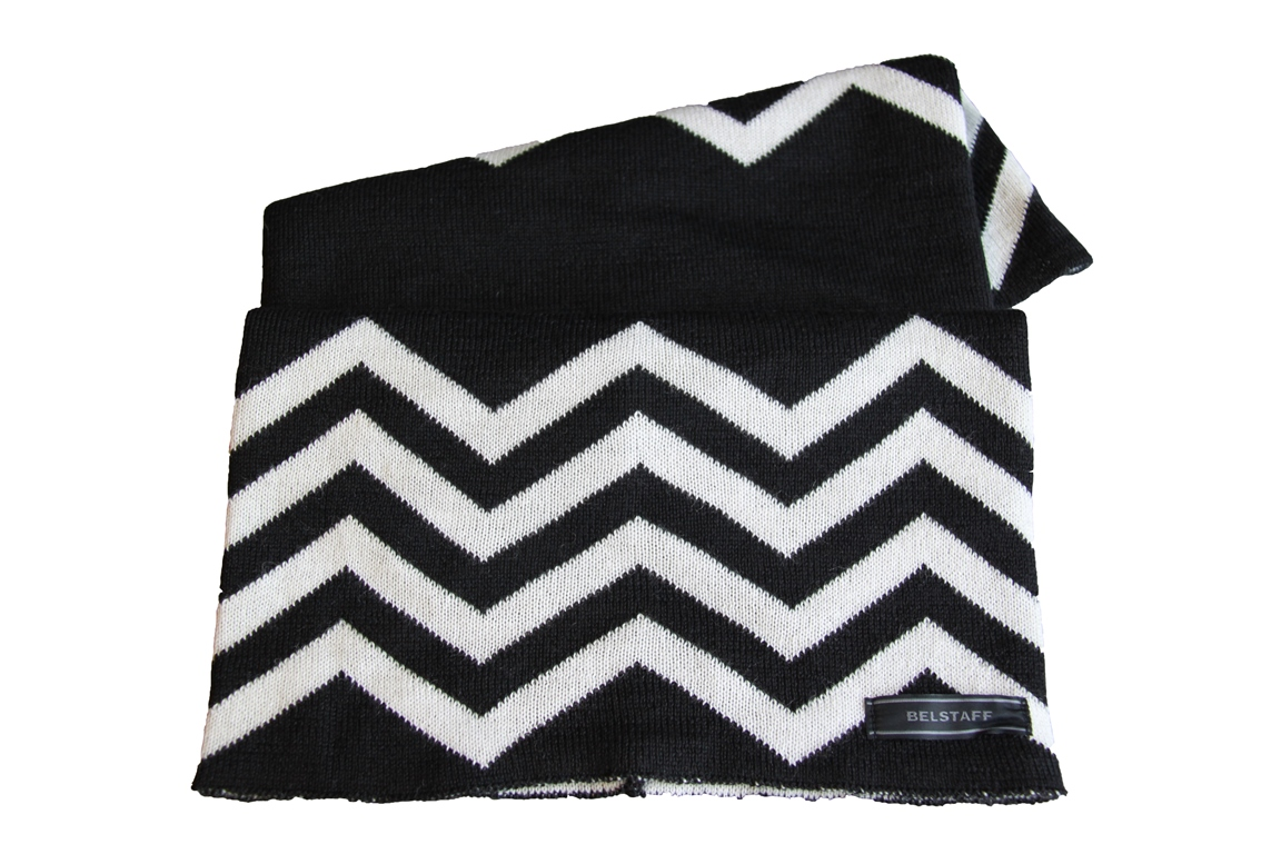 This Merino Wool neck warmer is made out of 50% wool and 50% acrylic. It has a zigzag stripe design and it’s reversible.