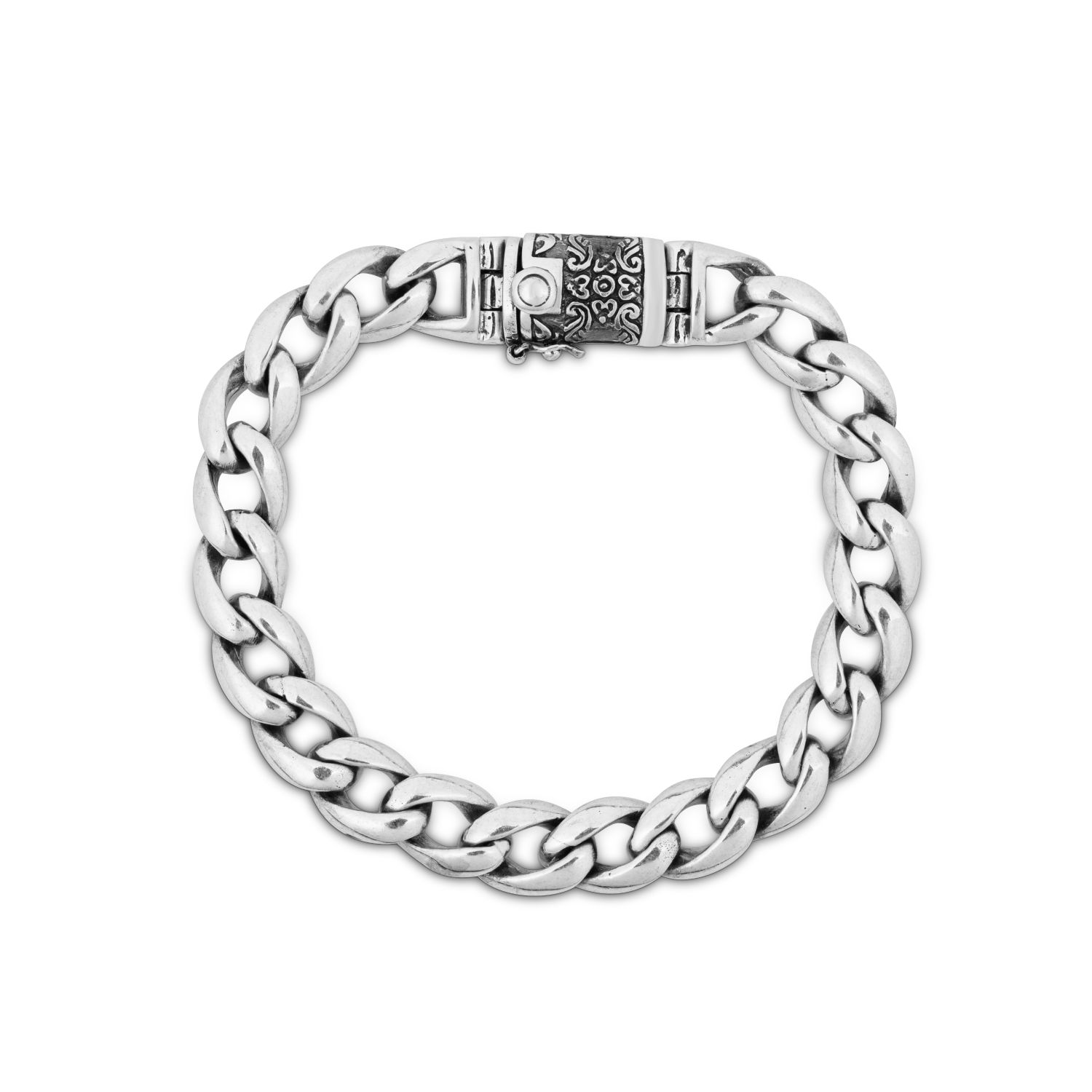 Curb link chain bracelet with detailed clasp crafted from solid