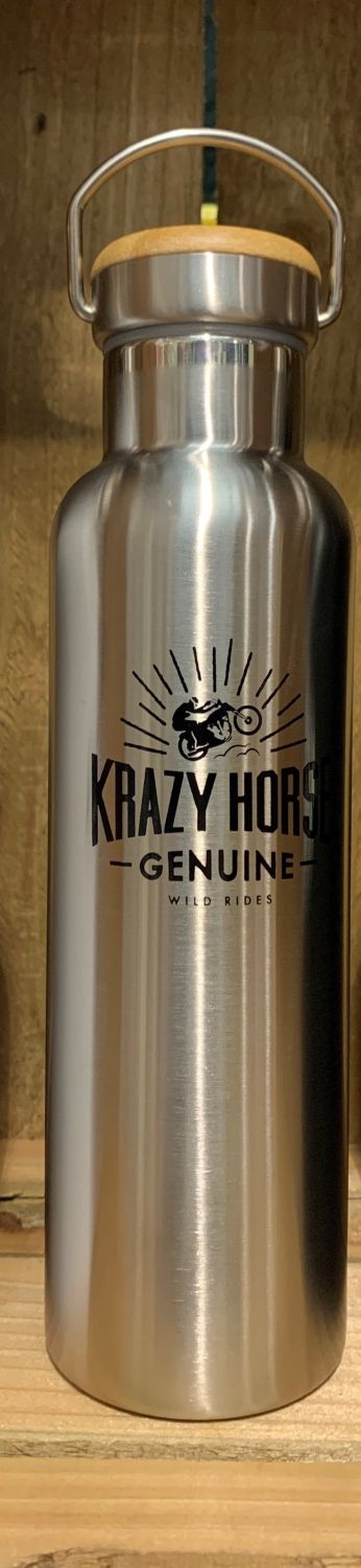 Double walled stainless steel bottle with bamboo lid Eco friendly.