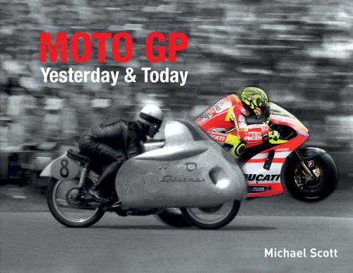Moto GP Yesterday & Today by Michael Scott MotoGP has never been seen like this before; in a unique visual study of motorcycle grand prix racings past and present. MotoGP Yesterday and Today is a stunning illustrated book where vintage photographs are shown alongside related images from the modern era. The themes covered include the legendary champions, famous tracks, great races and life away from the track, and the result is a unique record that shows MotoGP from a new and revealing perspective. Written by leading MotoGP journalist, Michael Scott, MotoGP Yesterday and Today reveals how much the sport has changed over the years but also how many of the fundamentals of motorcycle racing remained unaltered.