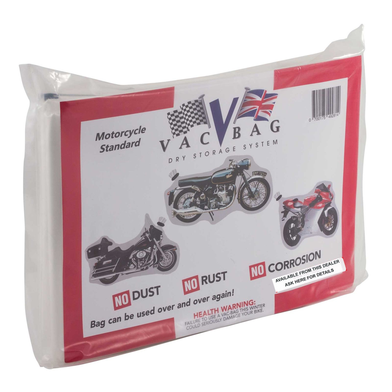 The VAC-BAG motor bike storage system pack comes with one drisorb desiccant sachet plus instructions on how to use your Vac Bag.