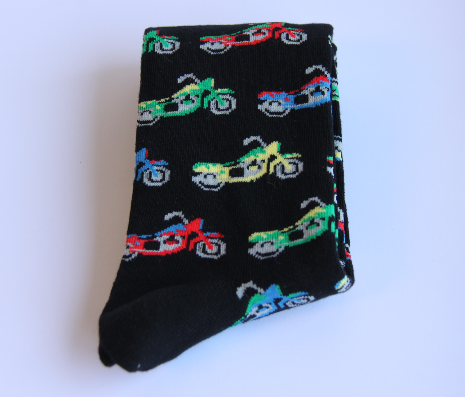 A repeat pattern of coloured motorcycles tastefully laid out on the tie. Smart and discrete.