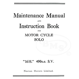 This Maintenance Manual and Instruction Book covers model: – Norton 16H 490cc SV