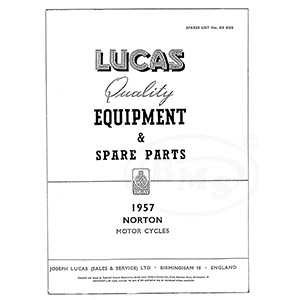 Norton 1957 Illustrated Lucas Leaflet. Covers all Lucas Parts and has Lucas numbers. DART/1402