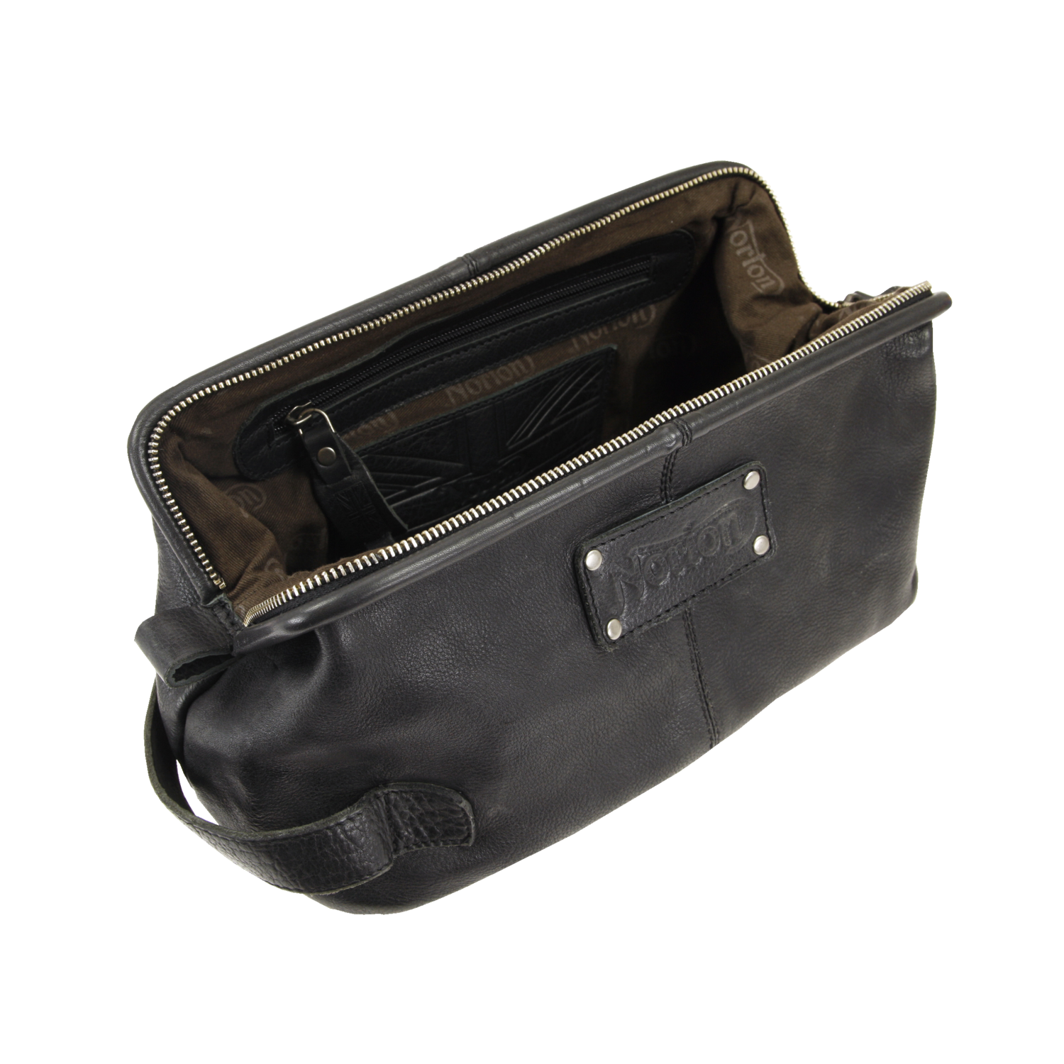 Norton Vintage Black Leather Wash Bag