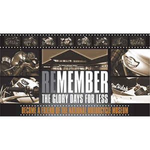 Friend of the Museum 18yrs-65yrs The National Motorcycle Museums 30th anniversary in 2014 seen the launch of the most exciting and innovative Membership scheme ever undertaken by a Museum or similar organisation. For an annual subscription not only do you get to support the greatest Motorcycle Museum in the world but by becoming a friend of the National Motorcycle Museum you receive: Joining pack & membership card. Unlimited free entry to the Museum for one year. 10% discount in the Museum Shop & Restaurant. One Free Bruce Main Smith photocopy set per annum (value can be up to £31.00) Access to regular workshop instruction days provided by the Museums restoration team. Full colour quarterly newsletter. Amazing Friends only competitions and giveaways every year. Discounts at a range of select partners & service providers including perks and privileges at over 4000 Best Western hotels around the world. To launch the Museum Friends Scheme the first 5000 Members that joined entered into a free draw to win a 1951 500cc Matchless G80 Motorcycle. One member from the first 5000 won a Beautiful Matchless worth over £4000.00. Other benefits include priority access & discounts to- Museum Try a classic bike Training days (including Veteran, Vintage & very very special!) Museum Classic Bike Tours (Escorted Bike Tours riding Vincent, Brough and many more iconic names!) Museum Live Stars on Stage and bike fire up evenings & events. Museum classic bike track days (In association with Mallory Park). Hospitality at selected classic motorcycle third party events in the UK & Europe. Plus save on Classic Motorcycle Insurance- National Motorcycle Museum Insurance (Powered by Footman James). Becoming a Friend of the National Museum entitles you to take advantage of the incredibly low rates that we have negotiated. Incredibly Low Rates for Friends of the Museum. Specialist cover by people who really understand old bikes. Classic Motor Cycle Young Enthusiasts scheme for 18 year olds (Eligible after 12 months NMM Friends Scheme Membership). Hassle Free Agreed Value-no paperwork or photos! With rates from just £64.00 before buying Classic Motorcycle Insurance try us first-call the dedicated insurance hotline (0800) 298 6643 to see just how much YOU can save.