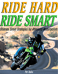 Ride Hard, Ride Smart: Ultimate Street Strategies for Advanced Motorcyclists by Pat Hahn. Ride Hard, Ride Smart is a practical, hands-on survival guide for the average motorcyclist. This book provides advanced survival and safety strategies for the developing rider. The vast wealth of knowledge and information developed by the motorcycle safety industry is bound into one chapter and one simple concept-the three degrees of separation-that sets the stage for the rest of the book. The three degrees of separation are riding strategies, training and skills, and protective gear-the things that separate the rider from death and injury. Hahn rates motorcycle risk and riding on a scale of one to ten, ten being mere moments away from certain death, and one being home safe in bed. Every motorcycle ride falls somewhere in between. Using the three degrees of separation, a rider can get the risk level down to a controllable level, creating the safest possible situation on a moving motorcycle.
