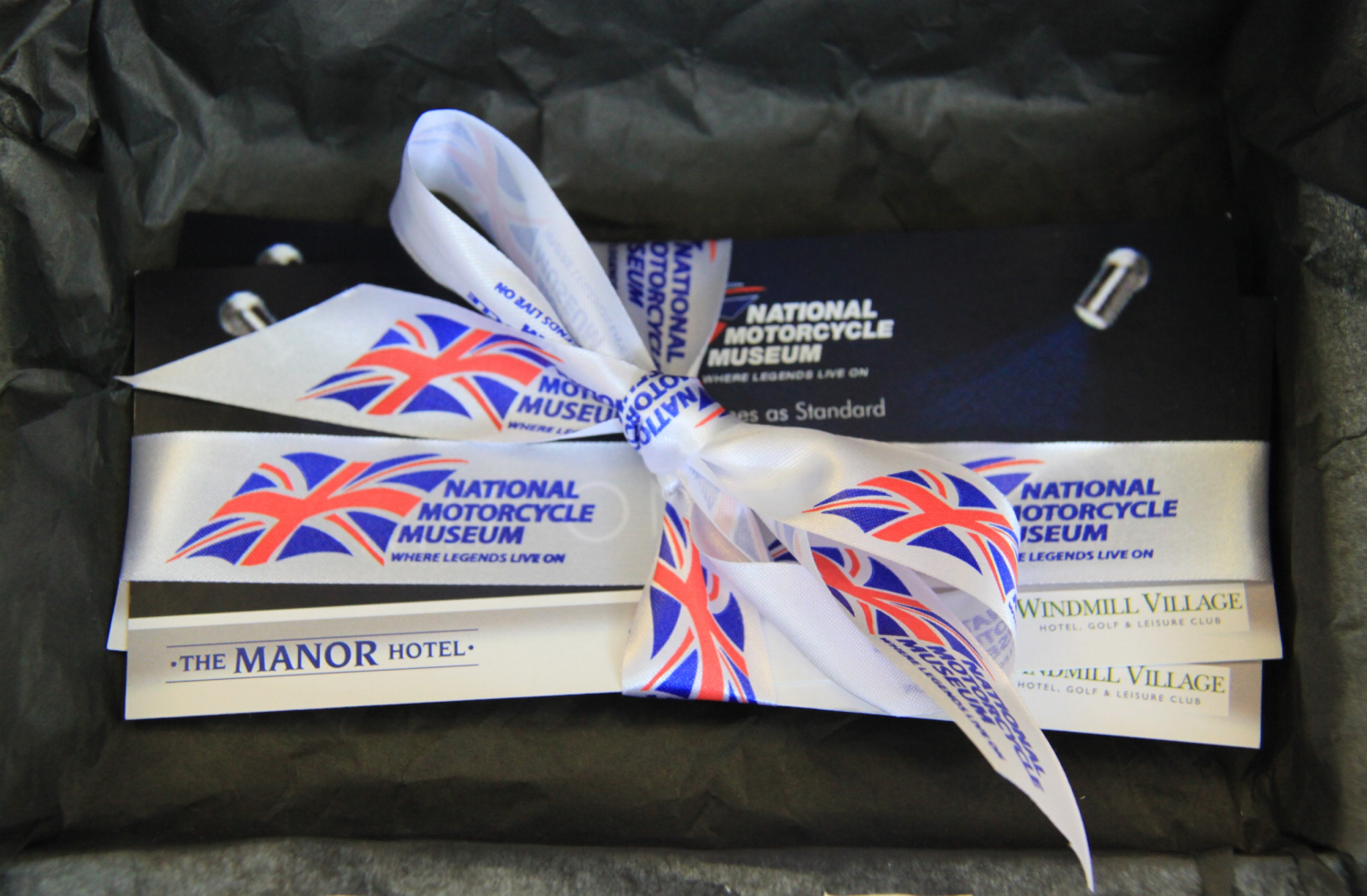 Admission ticket enclosed in a gift wrapped presentation box.