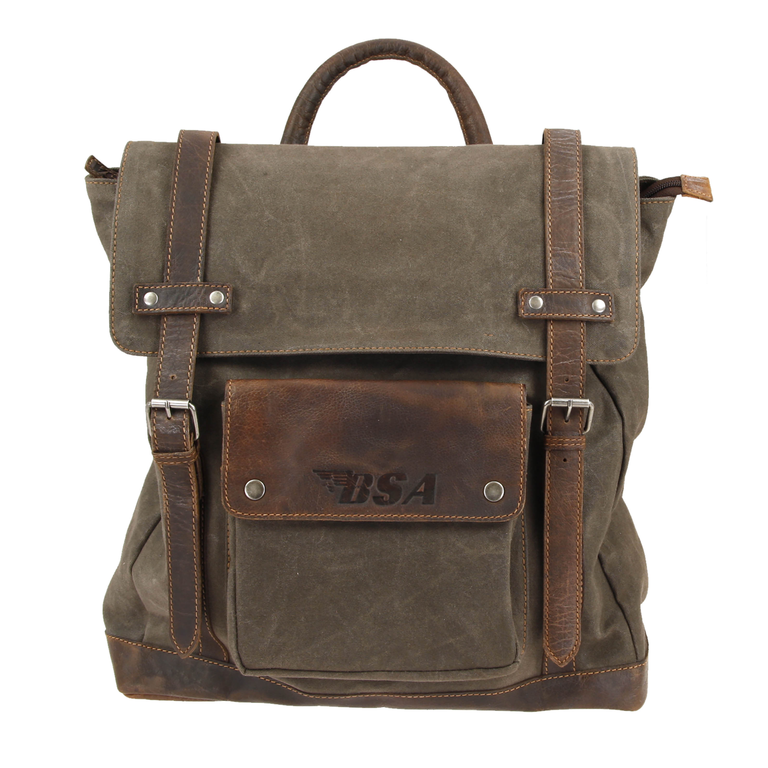 Composition: Full Grain Leather And Canvas Fabric With Branded Cotton Lining. Available In: Brown Hardware Finish: Antique Silver Size: Width 36CM, Height 38CM