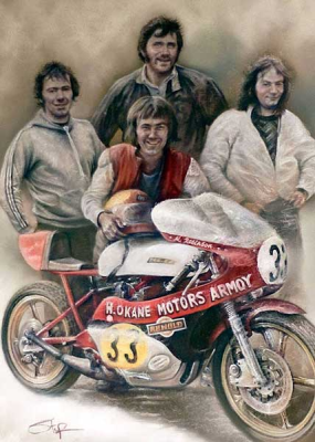 Limited Edition Print Featuring: Joey Dunlop , Frank Kennedy, Mervyn Robinson and Jim Dunlop.