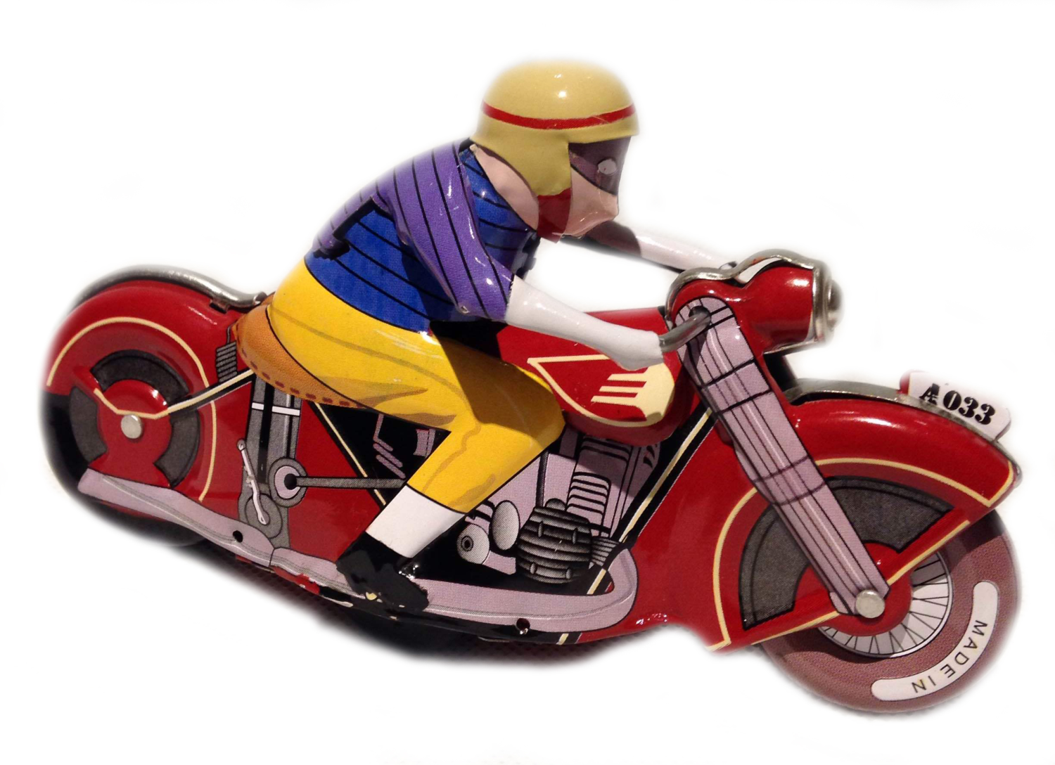 This clockwork daredevil zooms round and round. Length 15cm (6 inches). Made to an exacting process with a skill and attention lacking in some of today’s mass produced plastic toys. Every tin treasure starts as a flat sheet of metal which is printed, cut and then passed through numerous tooling stations before being assembled by hand. As well as being beautiful clockwork novelties, these tin toys are sure to become collector’s pieces. WARNING: They are nostalgic replica products for adult collectors only and are not designed to comply with toy safety legislation