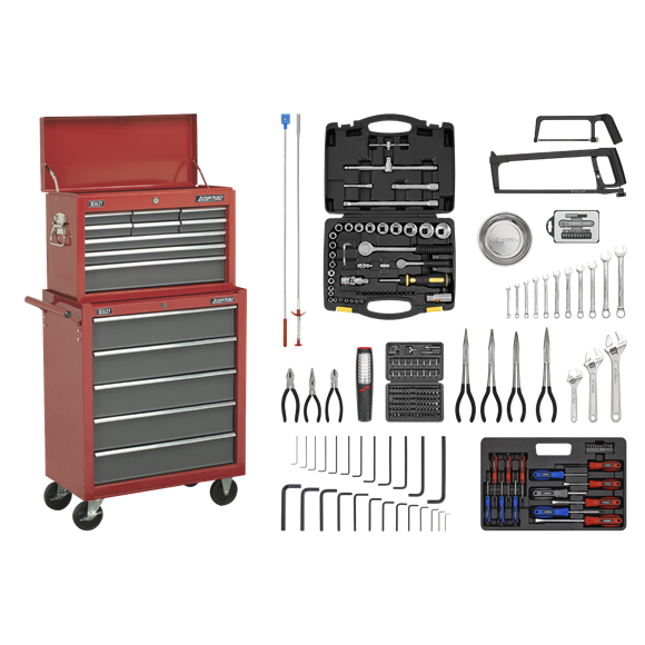 • AP22509BB – 9 Drawer Topchest with Ball-Bearing Slides – Red/Grey