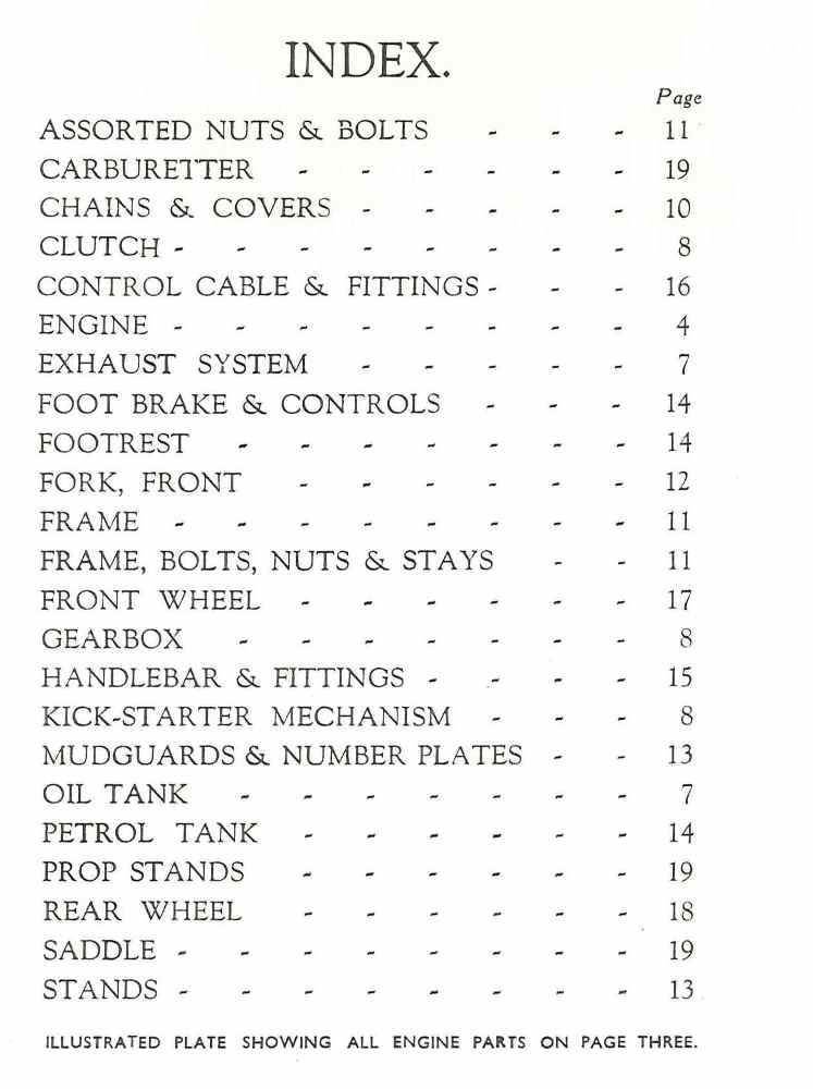 Triumph 1940 Spare Parts Manual 343cc model 3SW s.v. single. Only one illustration. YOLLAND/181