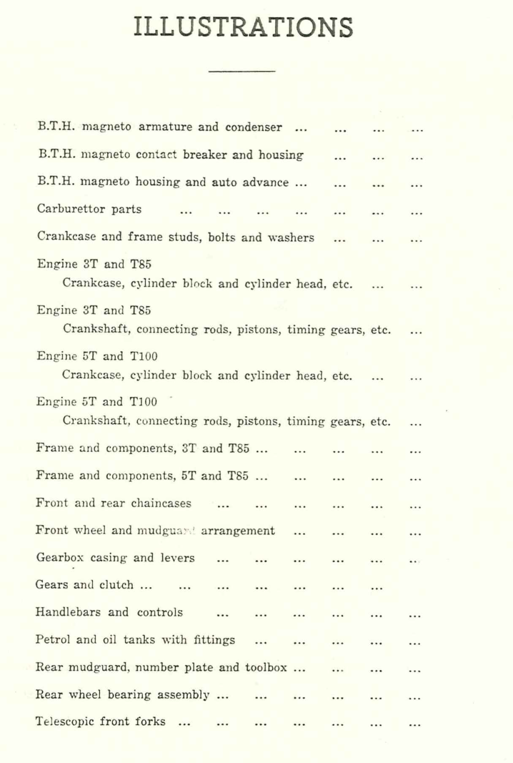 Triumph 1946 Illustrated Spare Parts Manual model 3T T85 5T & T100 o.h.v twins. CLARION/314