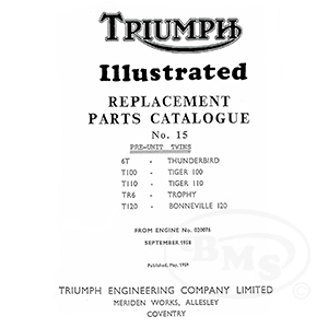 Triumph 1959 Illustrated Spares Manual pre-unit twin T100 6T T110 T120 TR6 from engine no. 020076. VROOM/704
