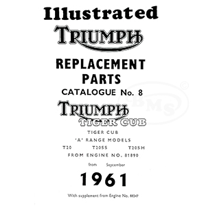 Triumph 1962 to 1963 Illustrated Spare List 199cc T20 T20SS T20SH Tiger Cub from engine no. 81890 1963 supplement. MADOC/358