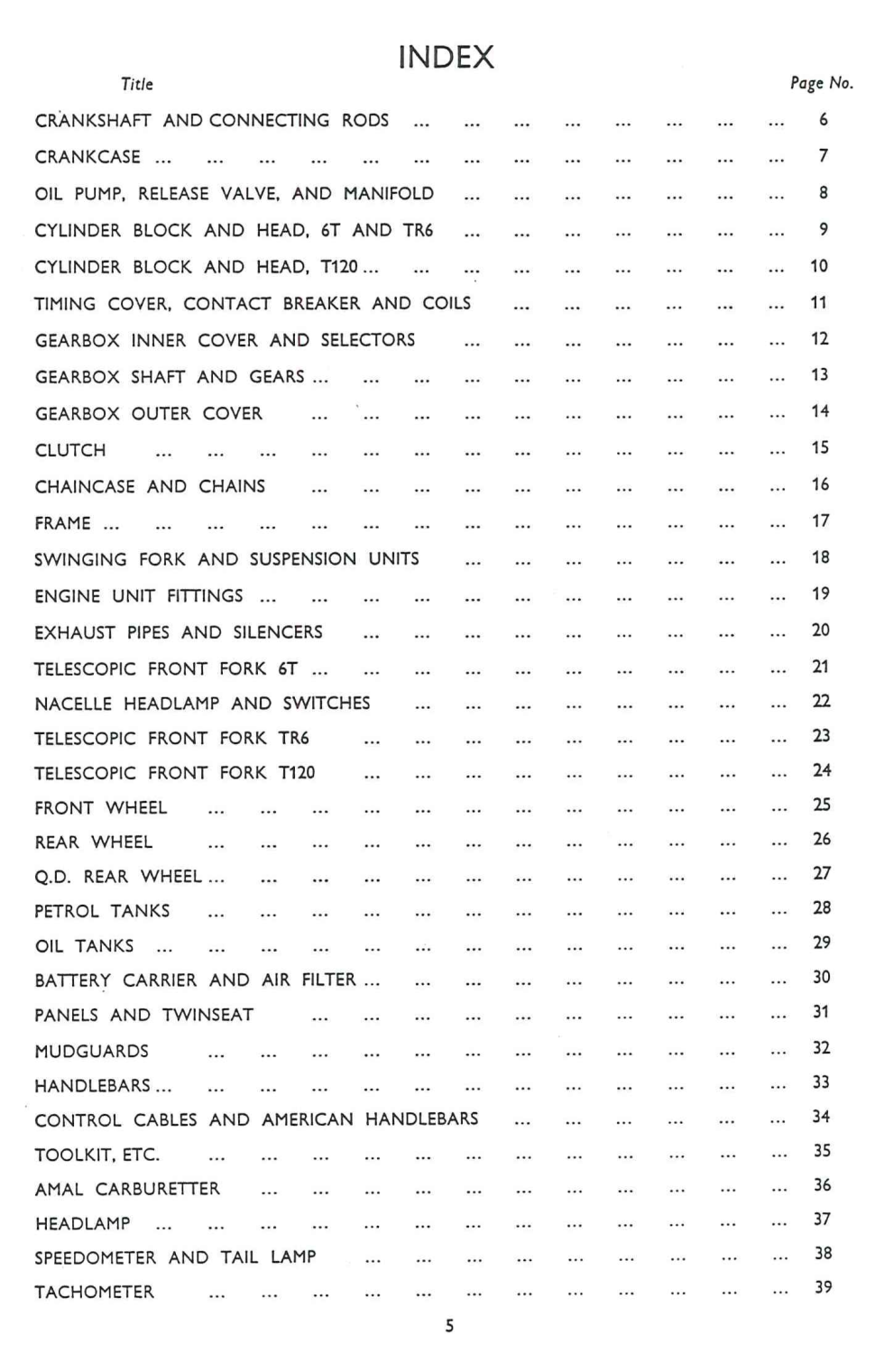 Triumph 1963 Spare Manual not Illustrated 650 unit twin 6T from DU765 TR6 from DU564 T120 from DU109. JEZEBEL/521
