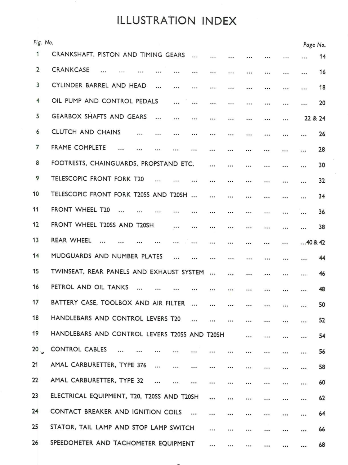 – Triumph Tiger Cub T20 – Triumph Tiger Cub T20SS – Triumph Tiger Cub T20SH