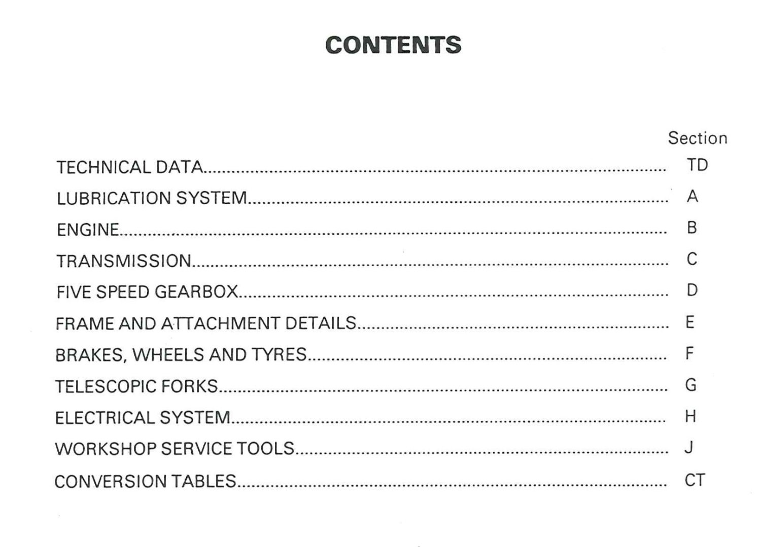 – 1979 Standard model – 1979 Light on with ignition model – Standard model with electric start – Electric Start model – lights on with ignition – Standard model (Kick Start) – TR65 only