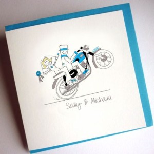 For a memorable touch for your guests, how about investing in personalised keepsake name badges and wedding favours that match your theme. These engraved wooden motorcycle napkin holders would make a lovely favour….or how about small leather jacket keychains, customised chocolates with bike wheels printed on the wrappers or even biker themed cupcakes for your guests.