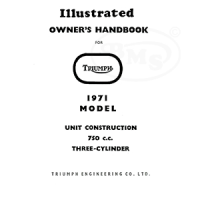 Triumph 1971 Illustrated Owners Handbook 750cc Trident Triple only. Spring Gold and Black. KLONE/547