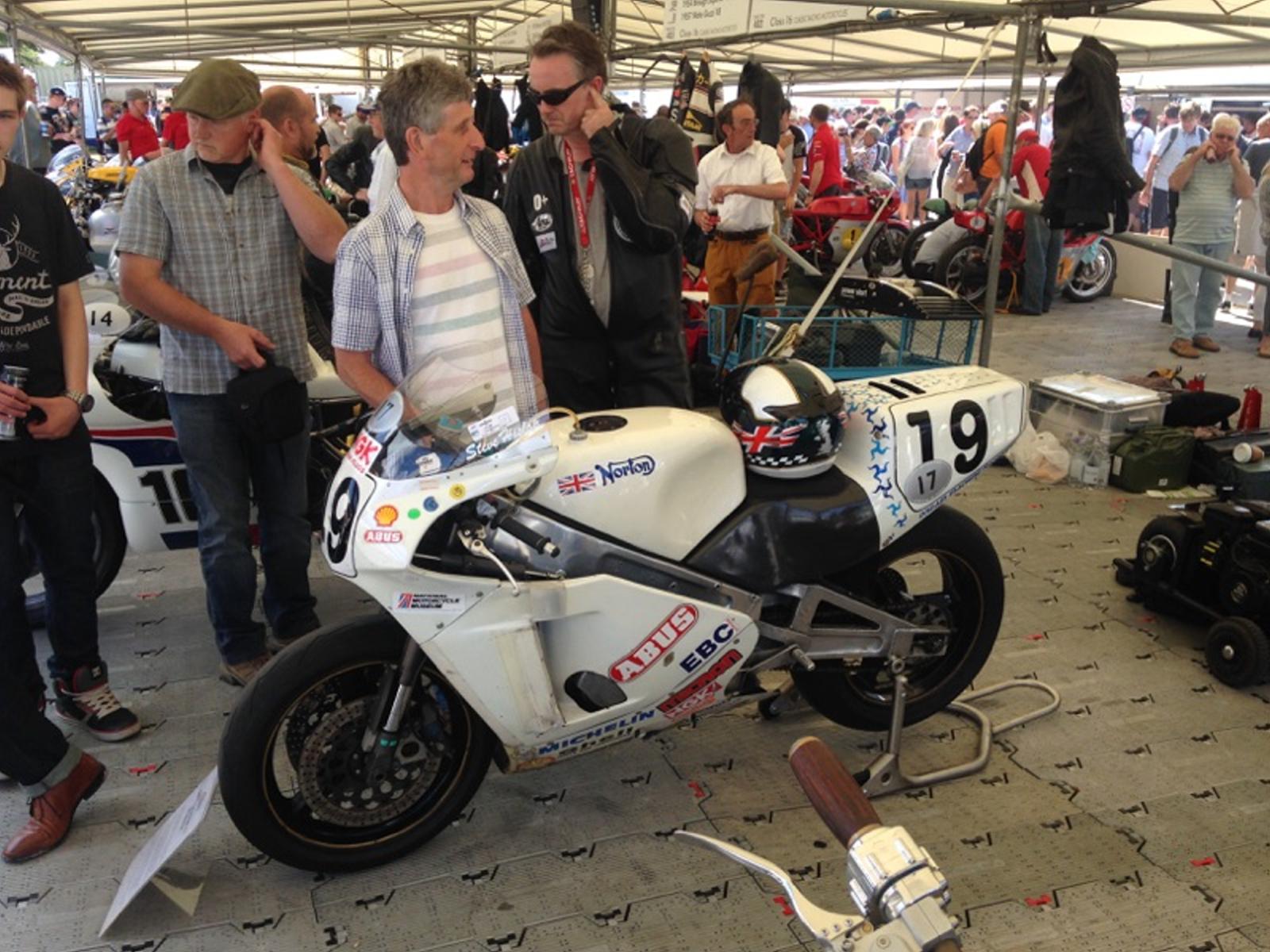 In the race paddock we had the crew looking after the famous 1992 TT Winning Rotary Norton “The White Charger” which Museum director James Hewing displayed on the famous Goodwood “hill” .