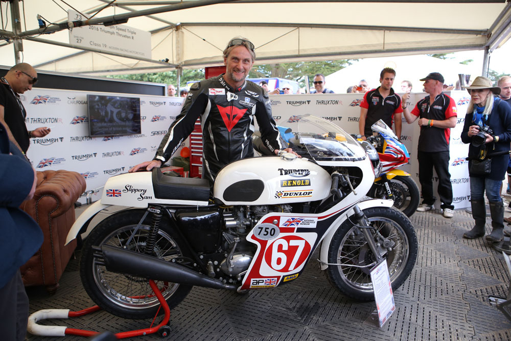 As part of the Museum & Triumph’s “Past & Present” feature, Carl Fogarty MBE returned to the Festival of Speed for the first time in eight years to ride Triumph machines both old and new whilst taking part in the famous Goodwood hill climb. Foggy rode two of the British marque’s current bikes, the Speed Triple and the Thruxton R as well as two of their famous forebears supplied by the National Motorcycle Museum.