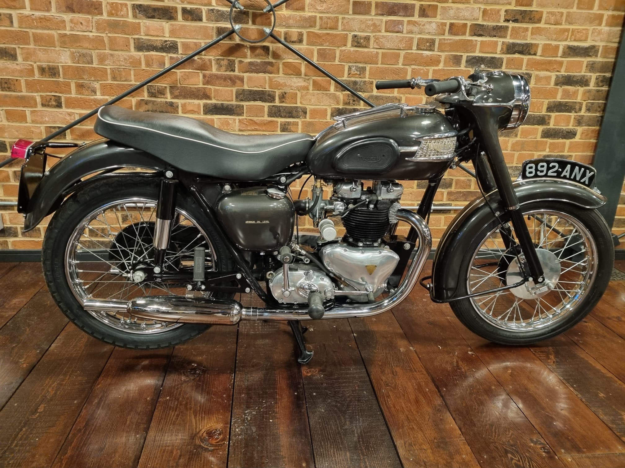 Development chief John Nelson was tail end Charlie of a colourful procession that stretched out along the motorway to Brussels in the morning sunshine. Triumph used a photograph of the stream of bikes taken from a motorway bridge for the cover of the 1960 catalogue’. During the trip, Edward Turner was photographed sitting on ‘892 ANX’, one of the few photographs ever showing him together with one of his classic designs. The bike was ridden on the rally by Bill and Hazel Roachard, at the time fitted with a Wessex sidecar. Years later the bike was restored to a very high standard by Triumph specialist Kevin Ince and sold to the current owner in 2016 to go into his private collection of classic bikes. It has been used recently but will require a light recommissioning before use and comes supplied with copies of various articles and photos showing its provenance together with a current V5C.