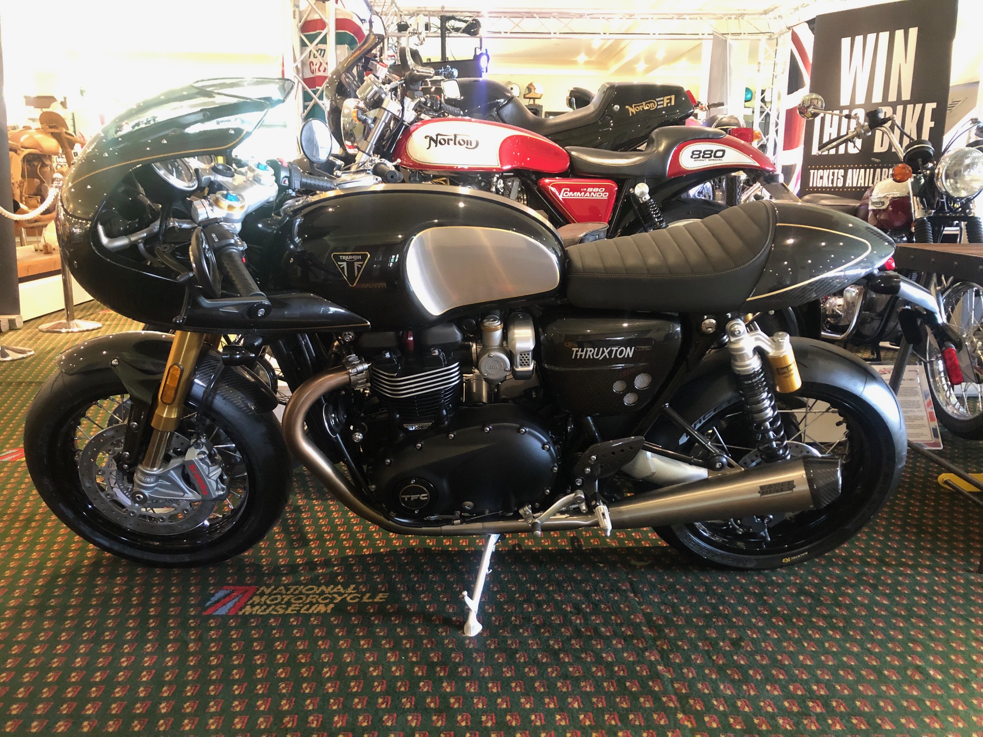 The Thruxton TFC (Triumph Factory Custom) is a limited edition model of just 750 units with a host of special upgrades over the standard Thruxton R.